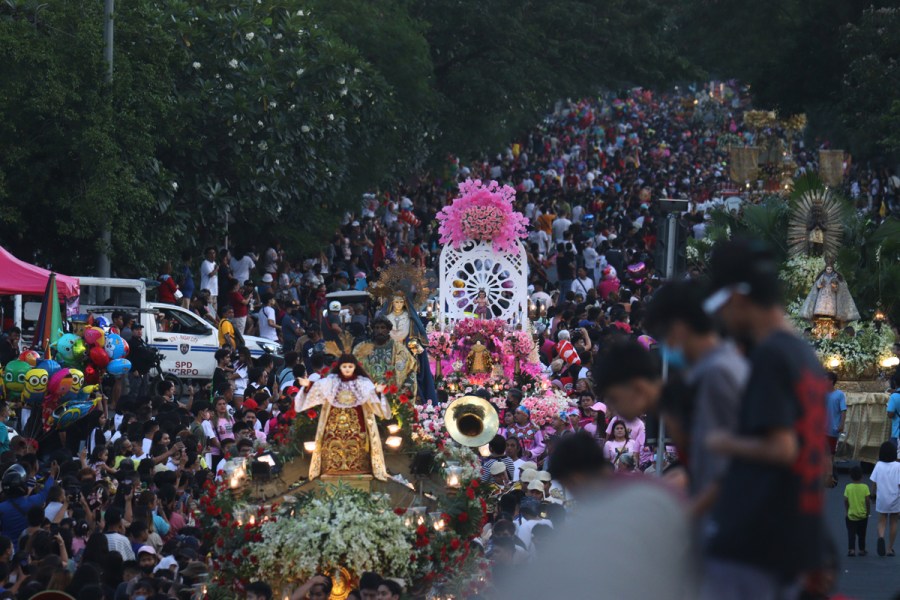 Participants from around Metro Manila and nearby provinces packed the streets from Pasay City Hall to Roxas Boulevard displaying their Sto. Niño images in varying representations.