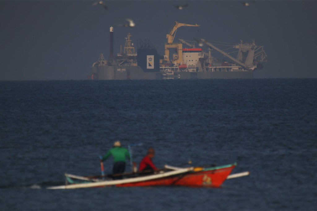 (Featured Image: A dredging vessel backdrops fishermen at the San Nicholas shoal. Elmer Valenzuela)