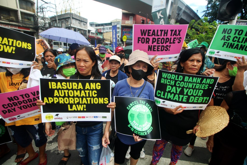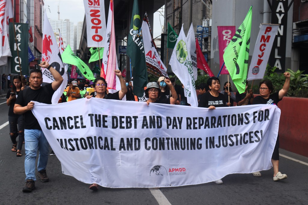 In the Philippines, hundreds of demonstrators marched to Mendiola, gateway to the presidential palace, with the call “Cancel the debt and pay reparations for historical and continuing injustices!” Ousted dictator Ferdinand Marcos Sr. remains known for his repressive rule as well as for crony capitalism, massive ill-gotten wealth hidden in tax havens and billions of dollars in public debt that served no benefit for the Filipino people. Current President Marcos Jr. shows no sign of moving to repeal the dictator’s Automatic Appropriations decree, which remains in place and continues to ensure that debt repayments are made over any other public need.
