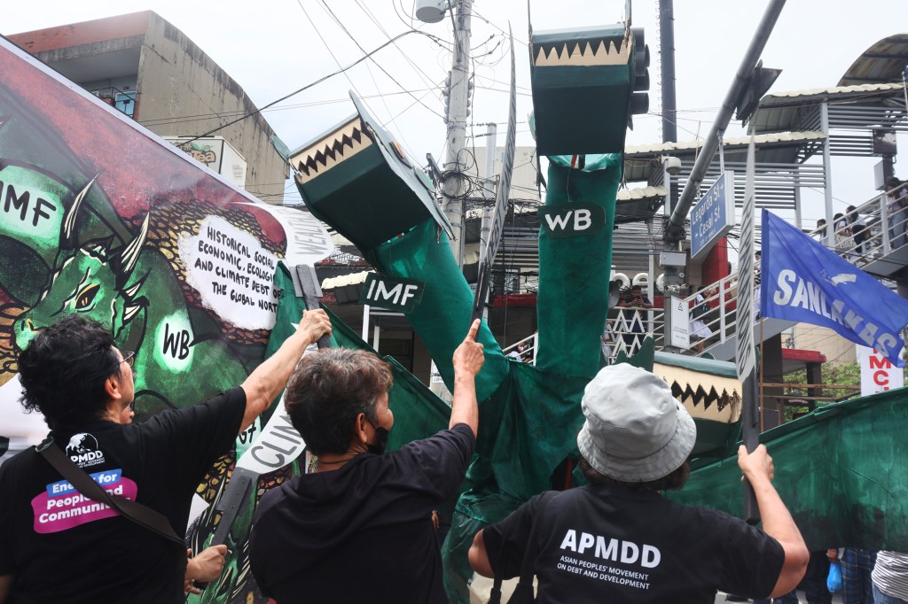 Members of the Asian Peoples’ Movement on Debt and Development (APMDD) took to the streets today, scoring the World Bank (WB), the International Monetary Fund (IMF) and G7 governments for worsening economic conditions in Global South countries and for further exacerbating the climate crisis. In the Philippines, Indonesia, Bangladesh, Pakistan, Sri Lanka and Nepal, they rallied around a common call: “cancel the debt and pay reparations for historical climate and economic injustices.”