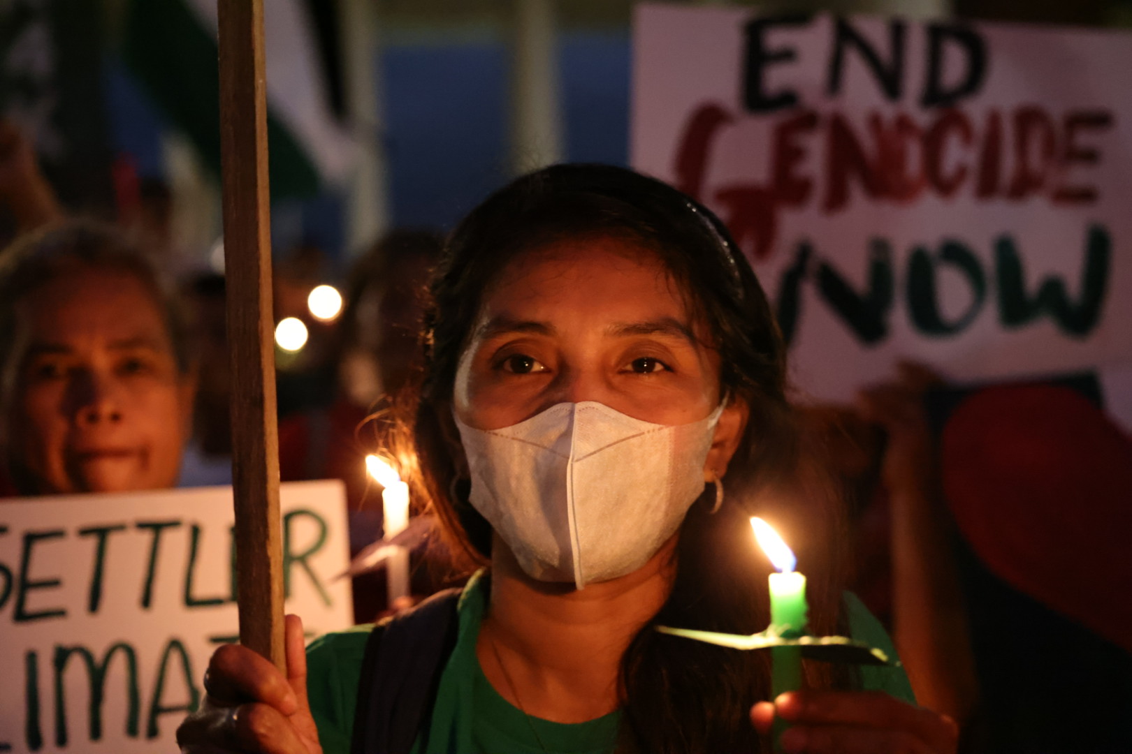 Hundreds of activists belonging to civil society groups and student movements held an indignation rally and candle-lit march in UP Diliman today to amplify the growing worldwide clamor for an immediate permanent ceasefire in Palestine, where the brutal occupation by Israel-led forces has caused the countless loss of human lives.
