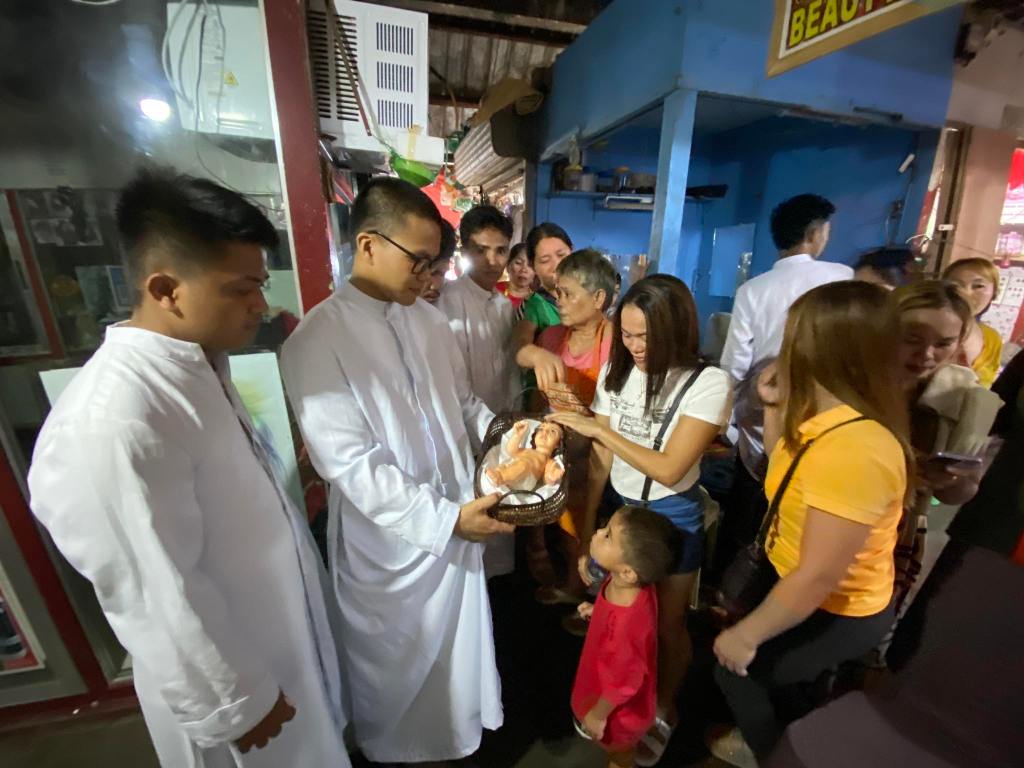 Servers of the Dipolog City Cathedral, canonically recognized as Our Lady of the Most Holy Rosary Cathedral Parish, bring a “new-born statue of Baby Jesus” around the city on Dec. 25, 2023.