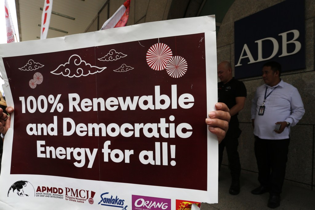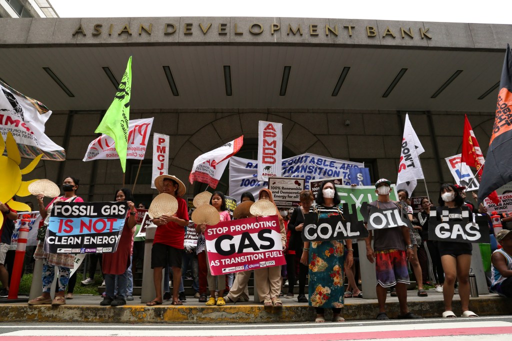 Climate campaigners demonstrate in front of the Asian Development Bank (ADB) headquarters in Mandaluyong City on June 5, 2024 calling on the delegates to the 19th Asia Clean Energy Forum (ACEF) to enable Asia’s rapid transition to renewable energy systems by 2050. ADB, along with the United States Agency for International Development (USAID) and the Korea Energy Agency (KEA), is hosting hundreds of clean energy practitioners from Asia for the 19th ACEF from June 3 to 7.