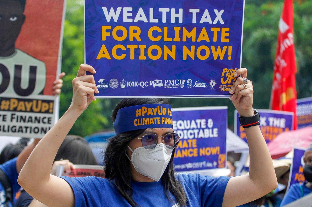 Philippine climate activists hold a protest near the U.S. Embassy Manila on June 11, 2024 to call on the leaders of the Group of 7 (G7) to pay up and deliver climate finance to developing countries in anticipation of the 50th G7 Summit on June 13.