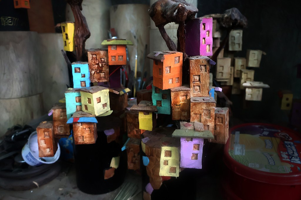 His strive for distinction led him to a different kind of visual experience: wood sculptures of miniature houses in vibrant colors. Crafted in an intermix of narra, batikuling, driftwood, and mahogany, the lilliputian homes have garnered significant popularity here and abroad. Cajipe’s says his tiny oeuvre is his artistic way of depicting the Filipino traits of vibrancy and hospitality.