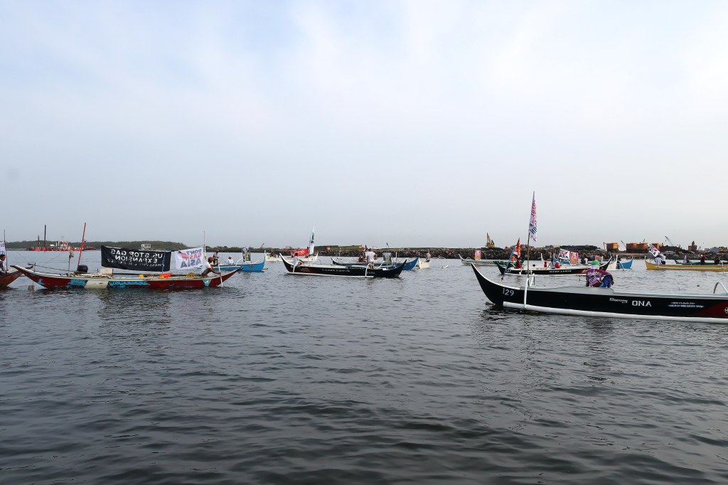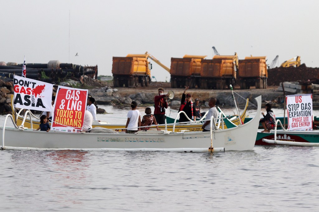 Small and artisanal fishing boats – representing communities’ traditional source of livelihood – provided a dramatic backdrop against giant structures of gas plants and liquefied natural gas (LNG) facilities.