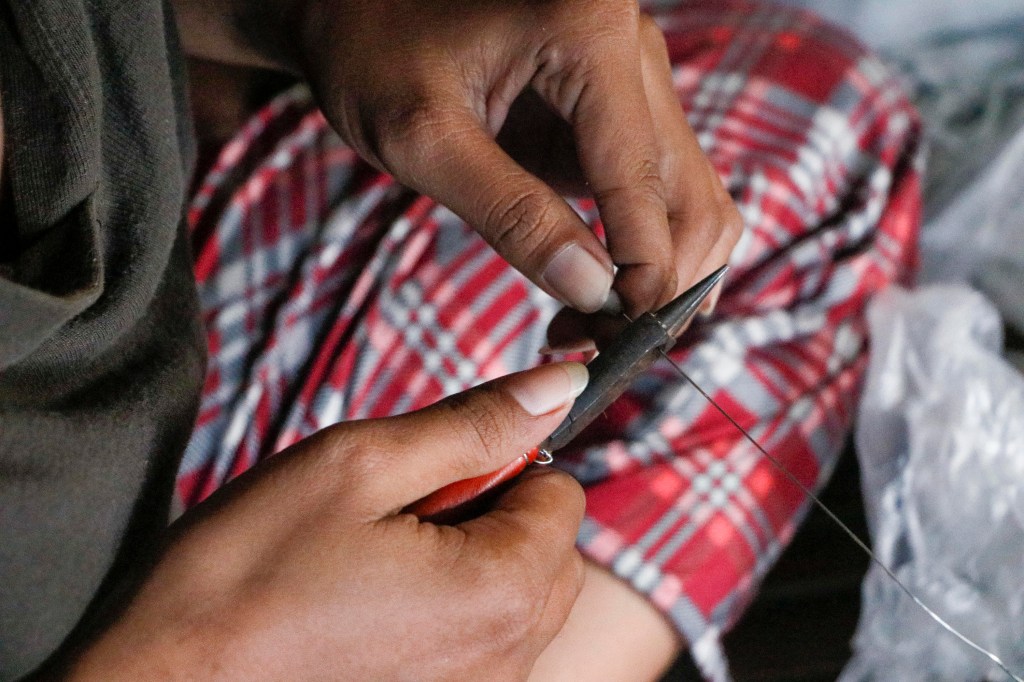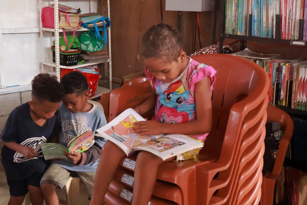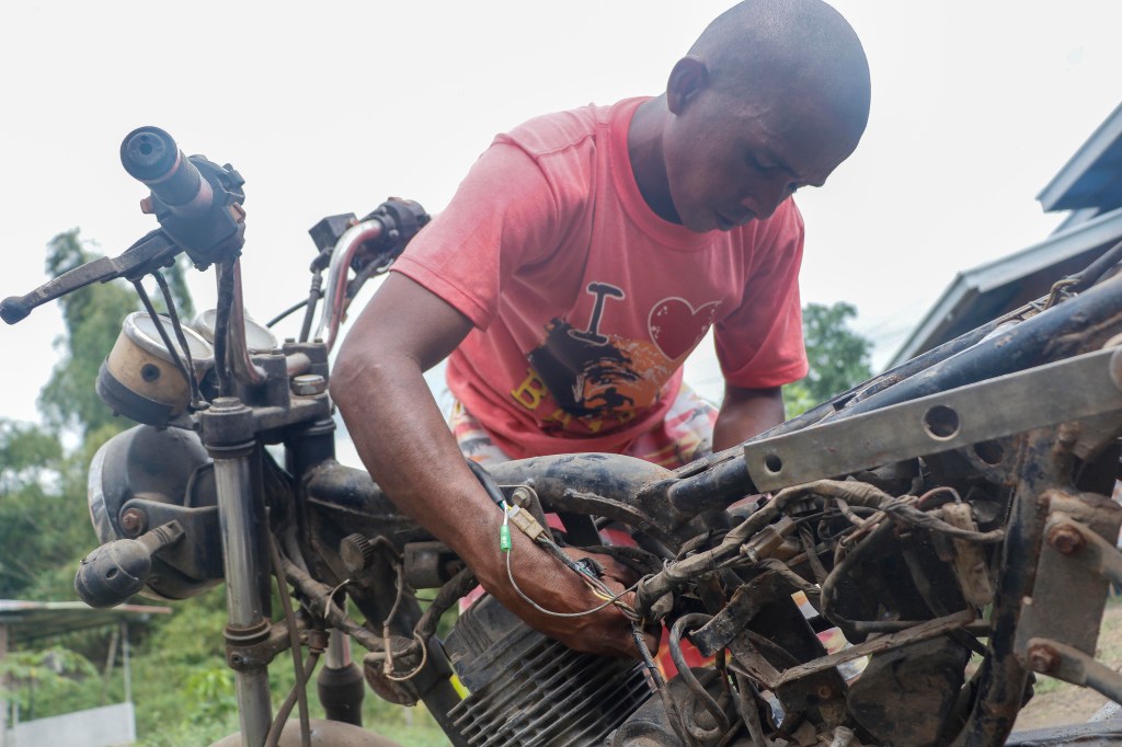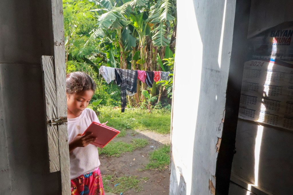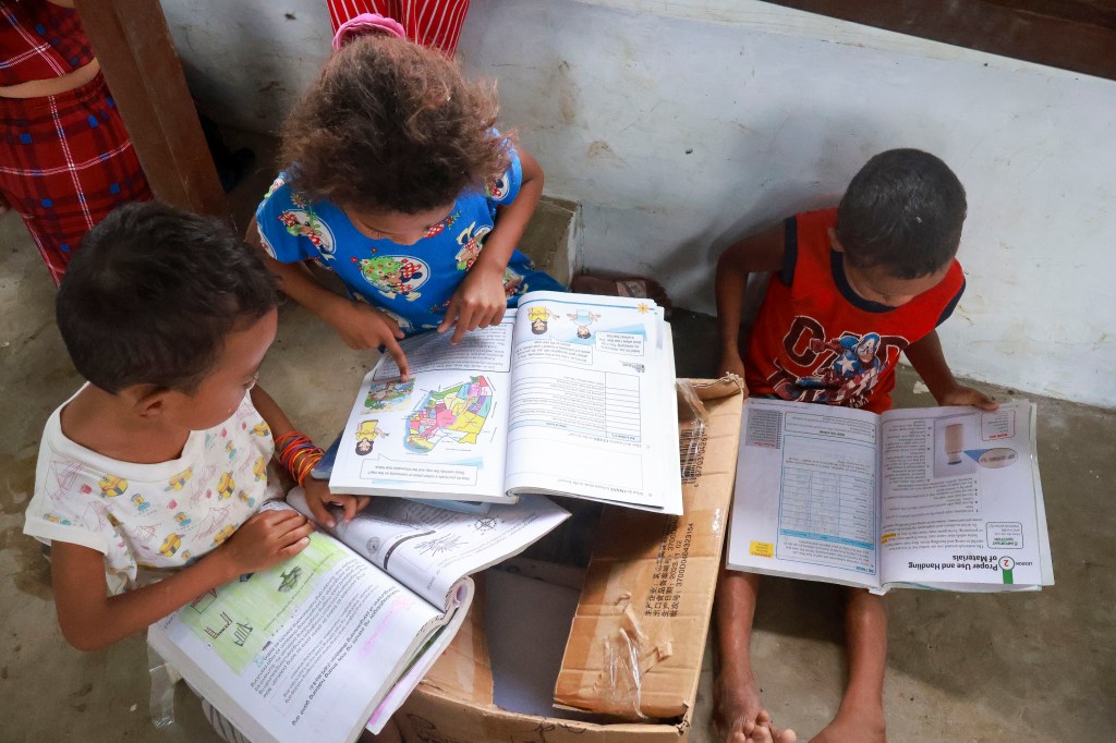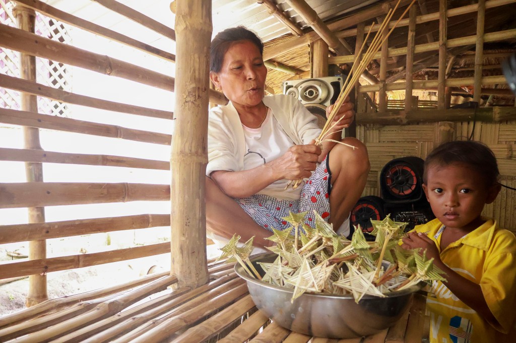 A group of Aeta children carry a box of textbooks that would be used for their weekly Sunday teaching session with volunteer teachers. With little to no support for Indigenous people from their local government unit, volunteer groups help teach the Aetas basic literacy and arithmetic skills.Aeta children read donated textbooks in their outdoor community center. With their communal culture, the Aetas allow everyone to read and review all of the books freely.Aeta learners also use their writing tablets outside the Aeta learning center during their free time. Most of the children are seen with these tablets practicing basic reading, writing, or even arithmetic.Marie, a regular student of the weekly teaching sessions, stands on the edge of a doorway while writing on her sketch tablet. Despite the community’s size and remote location, a generous amount of its space is allotted for an open educational environment for the whole community.Aeta children gather inside the learning center to read through books and school materials donated to their community. Their custom curriculum includes basic reading comprehension topics in English, Tagalog, or Kapampangan.Children in the Aeta community compete in a sack race outside the learning center. Beyond studying, playtime in free open spaces is an essential part of the learning process for the Aeta children.Volunteers from the group Liwanag at Dunong visit the community to teach not only Aeta children, but also older members of the community basic reading, writing, and mathematics every Sunday. The group built the Aetas a learning center that serves as their school and library for their weekly study sessions. These teaching sessions give the Aetas the needed literacy and arithmetic knowledge that would enable them to sell their products without the fear of being scammed.Volunteer teacher Maningning Vilog sheds tears during an interview after a sharing session with the elders. In the past, the Aetas used to belittle their capabilities whenever they were exploited and mocked by other people. A few years into the learning program, they now understand that they are not the ones at fault and are capable of defending their rights as Indigenous people.An Aeta family creates bracelets and anklets that they sell to visitors using beads gathered from a neighboring mountain. Many of the Aeta residents in Sitio Gayaman travel for hours to harvest products in the mountains for their livelihood.Maymay crafts bracelets made from locally sourced wooden beads. The Aeta community values their heritage of craftsmanship, which is dependent on the resources available within the local mountainside. They use their traditional skills to gather extra income to help provide for their needs.Rhea sells the homemade bracelets and anklets to volunteers and other visitors in their community. She is among the Aeta children who choose to help with their family’s livelihood on weekdays in place of studying in the elementary school near the community.Lolita De Guzman, one of the elder members of the Aeta community in Sitio Gayaman, shows the bamboo twigs she uses to create Christmas ornaments which she sells for extra income. While she manages one of the few remaining farming areas in the community, the food it produces is not enough to cater to their needs, forcing her family to find ways to gather income for their needs.Nanay Lolita demonstrates how she weaves ornamental stars out of bamboo fibers to sell in time for Christmas. She sources her materials from the nearby mountains, which also face the threat of deforestation and land conversion. While she makes the ornaments out of natural raw materials, she purchases her paint and other decorative materials from an online store, which also delivers directly to their community.Louis De Guzman harvests kangkong sprouts on the lake across “Susong Dalaga”, a hill that used to be a source of food and ample income for the Aetas, in the way of harvesting fresh river snails or susô. The way to Susong Dalaga is now impassable as New Clark City quarries have caused the lake to go from ankle-deep to a depth that has caused an incident nearly drowning 3 Aeta children and leaving one dead.A group in the Aeta community poses with the vegetable and fruit products that they harvested in the nearby mountains. Every Sunday, they travel for over two hours early in the morning to gather the produce that they sell to the visitors and volunteers in the community.Nanay Penny harvests a piece of silk squash or patola in the farming area behind their house. Their mini-farm features different plants such as papaya and patola, which Nanay Penny and her family eat daily. Nanay Penny’s backyard is one of the remaining areas in the community that produces edible crops.Various livestock can be seen around Sitio Gayaman. Most of these animals are taken care of until they are old enough to either eat or sell. Some, such as the goats, were donated by visitors to the community.Ricardo Monterola carves the frame of a bow and arrow from the branch of a banana tree. The Aeta are renowned for their hunter-gatherer lifestyle which necessitates the skills to craft and shoot a bow and arrow or pana. Ricardo, however, has not been able to hunt in recent years as he opted to work as a construction worker in a nearby town to provide for his family.Christian Tiglao reconnects the broken components that he fixed on his motorcycle. Christian rides the vehicele to travel to his job at a golf course in Tarlac, an establishment that displaced many Aeta people. The Aeta community in Sitio Gayaman is driven to adapt to modern-day technology in order to be able to work for their necessities.Solar panels are installed onto the roof of a house in Sitio Gayaman. Alternative sources of energy, such as second-hand panels were installed by the residents to help save on electricity, especially with the absence of urban lighting.An Aeta child scrolls through a social media app inside th