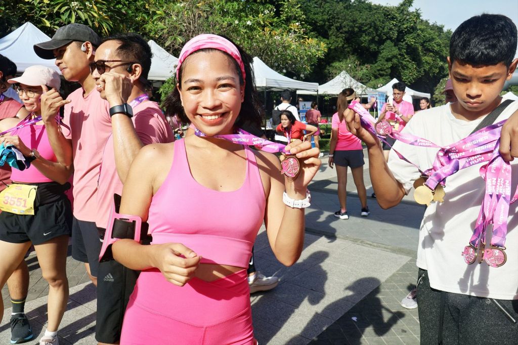 Towards the end of the event, Anya and her friends and most participants were happy to have their picture taken at the Pink Run balloon hoop moongate arch while flexing their run medals.