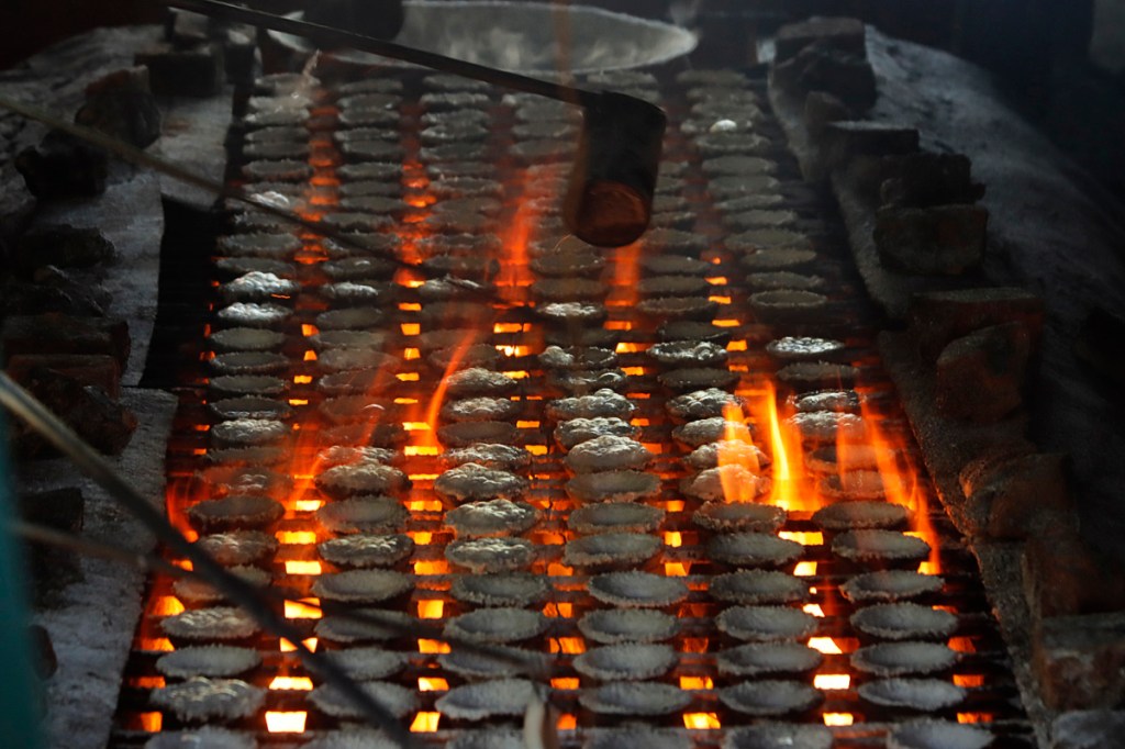 The brine is boiled for hours in clay pots over firewood. As it evaporates, salt forms and binds into a solid dome inside the pot.
