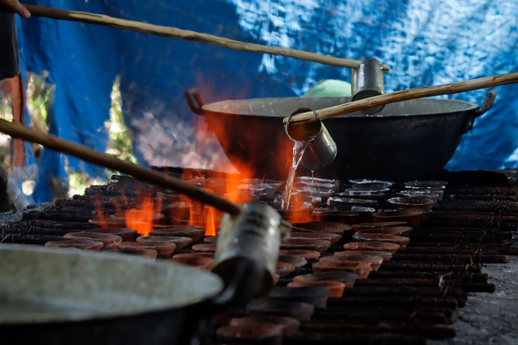 The salt is left to dry, forming the signature tibuok (whole) dome-like shape.