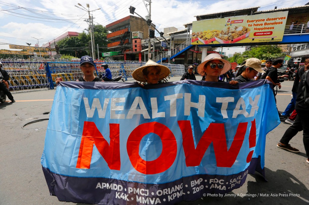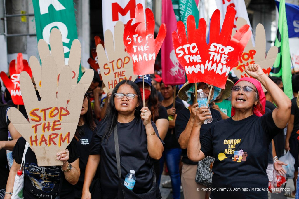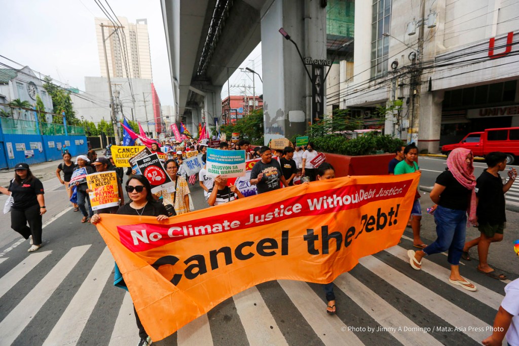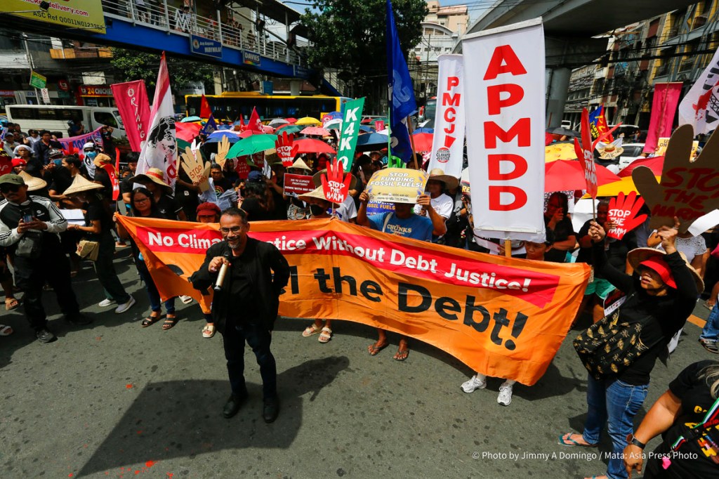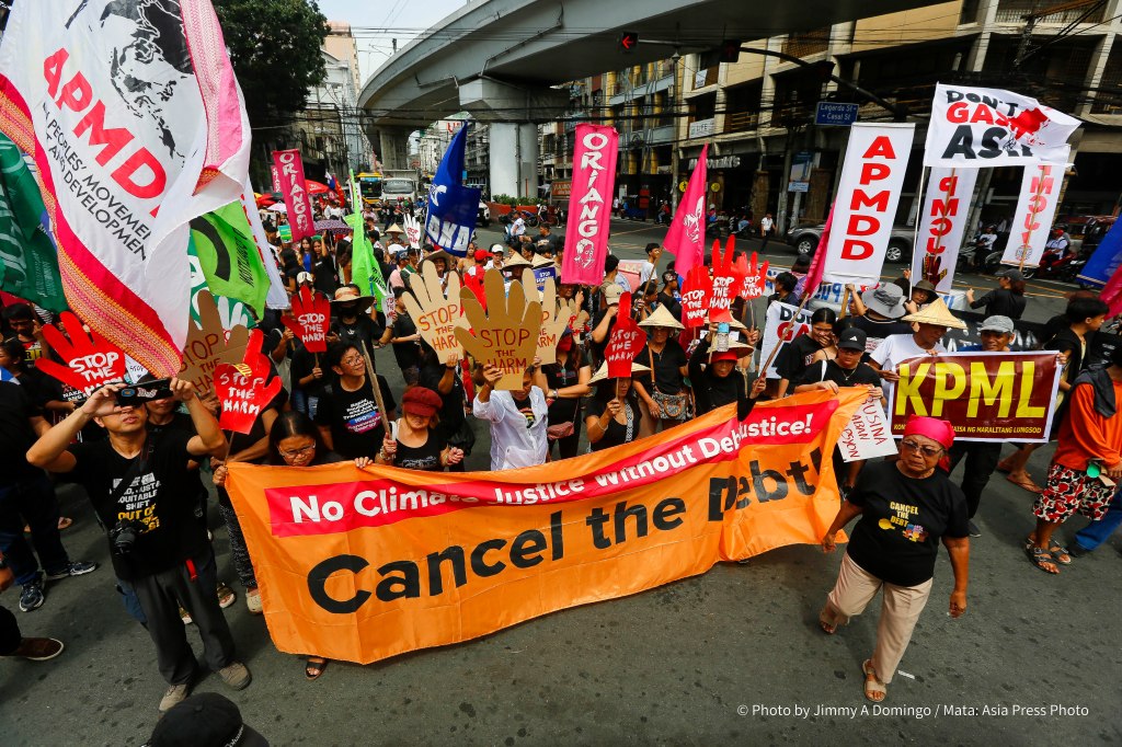 The demonstration brings together campaigners and activists from Oriang National Women’s Movement, Kilusan para sa Kabuhayan Kalusugan Kalikasan at Katiyakan sa Paninirahan, Sanlakas, Bukluran ng Manggagawang Pilipino, Philippine Movement for Climate Justice. Aniban ng Manggagawa sa Agrikultura, Freedom from Debt Coalition, Zone One Tondo Organization, and the regional Asian Peoples’ Movement on Debt and Development (APMDD).