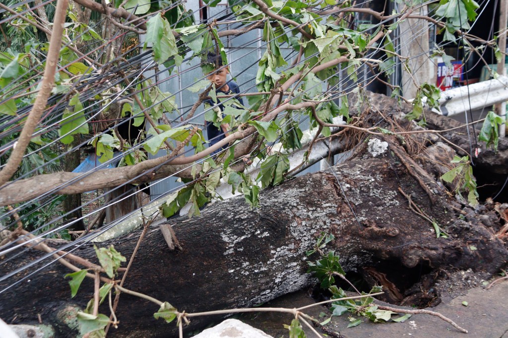 In Iriga City, uprooted trees and damaged power lines aggravated widespread blackouts.