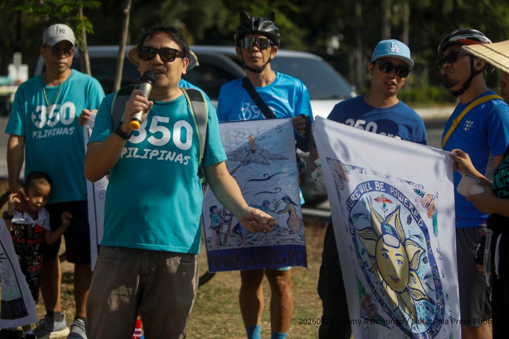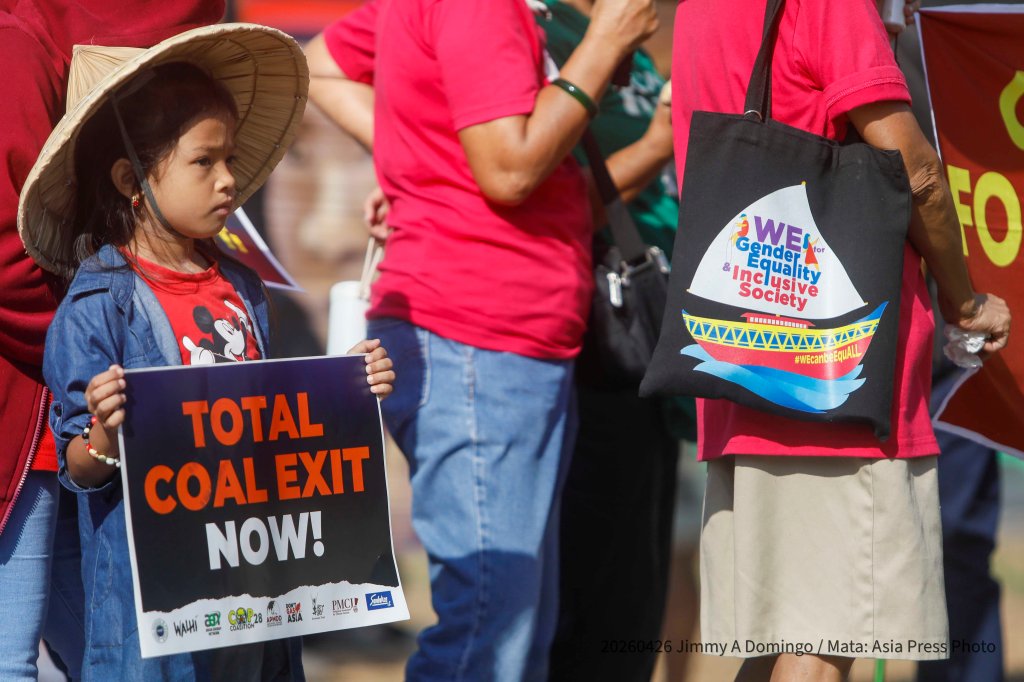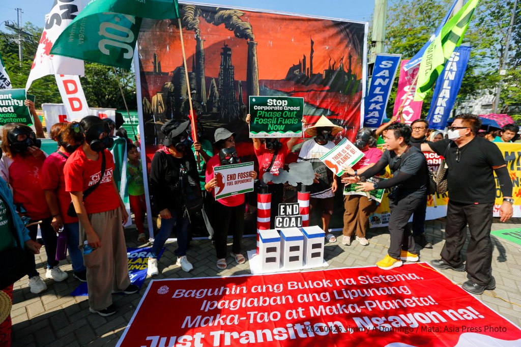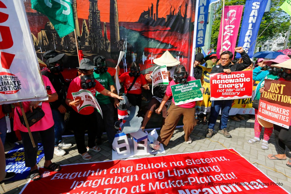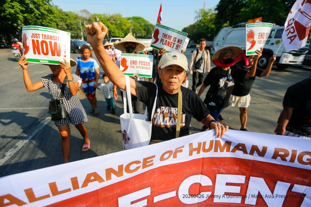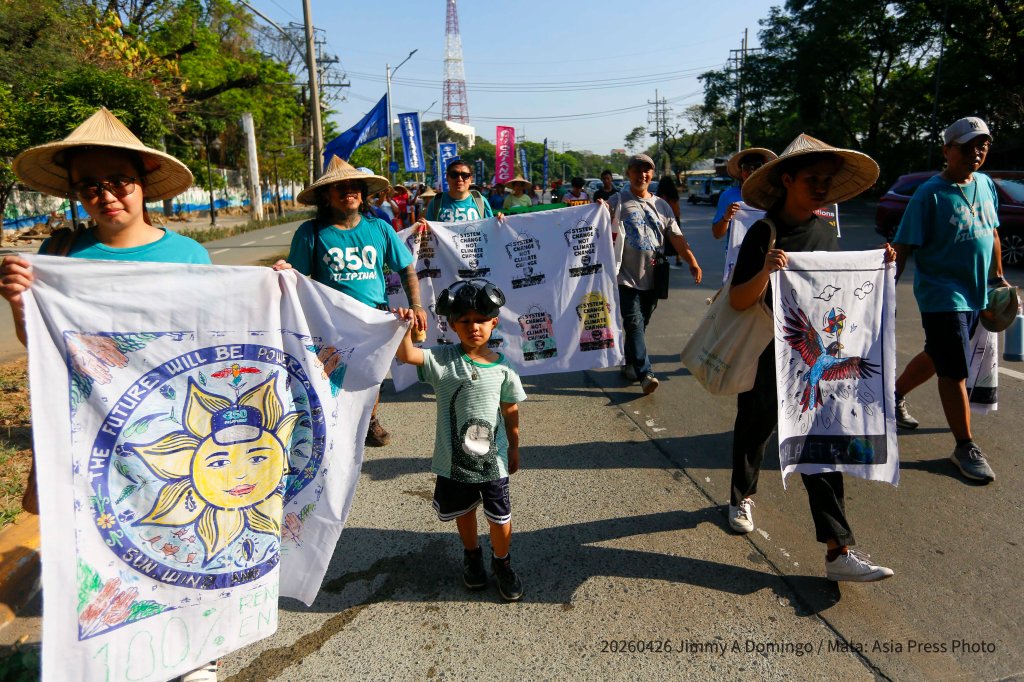 Filipino climate and social justice groups stage a rally in Elliptical Road, Quezon City on April 26, 2026 as part of global demonstrations calling for a rapid, just, and equitable transition to a fossil-free future. The protest is time for the 1st International Conference on Transitioning Away from Fossil Fuels in Santa Marta, Colombia, a historic summit co-hosted by the governments of Colombia and the Netherlands that aims to facilitate the global energy transition.